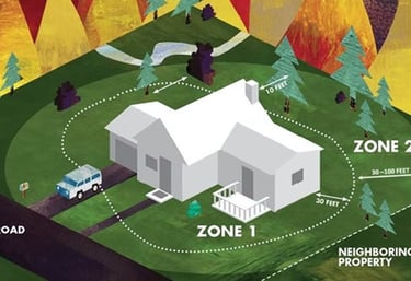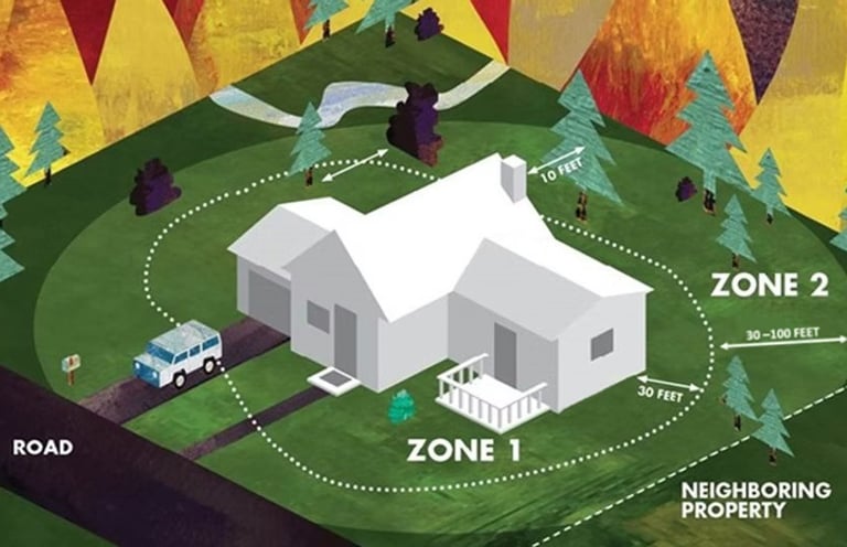 Zone 1, called the "Defensible Space Zone", is the area within 50 feet of a structure or property line.